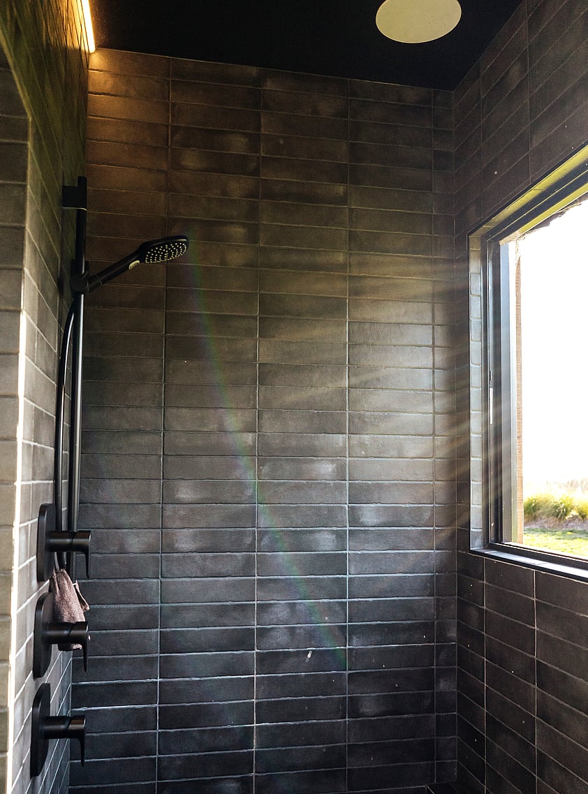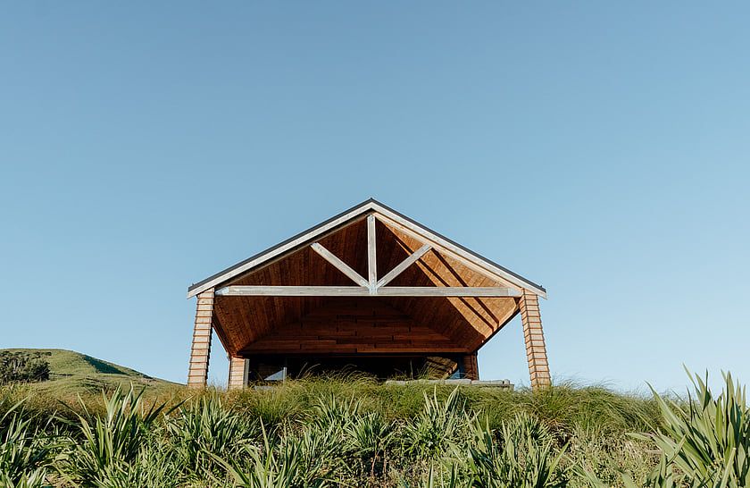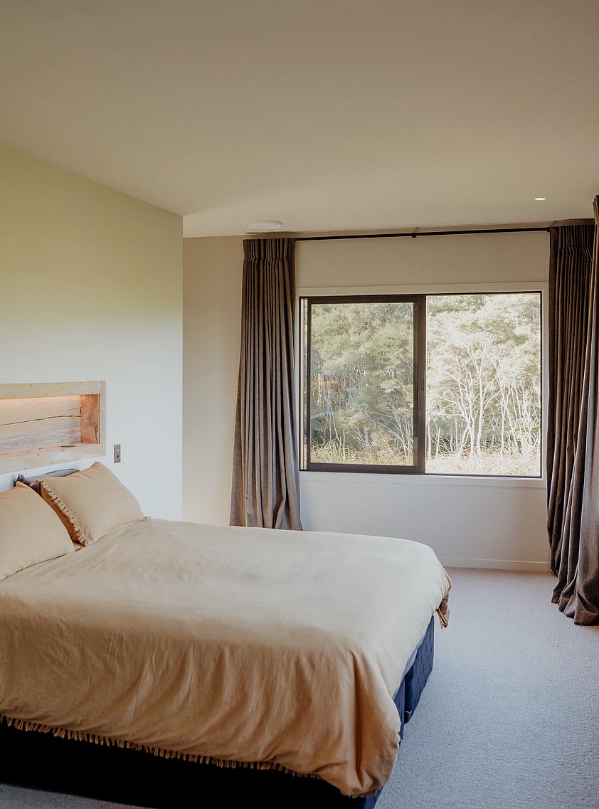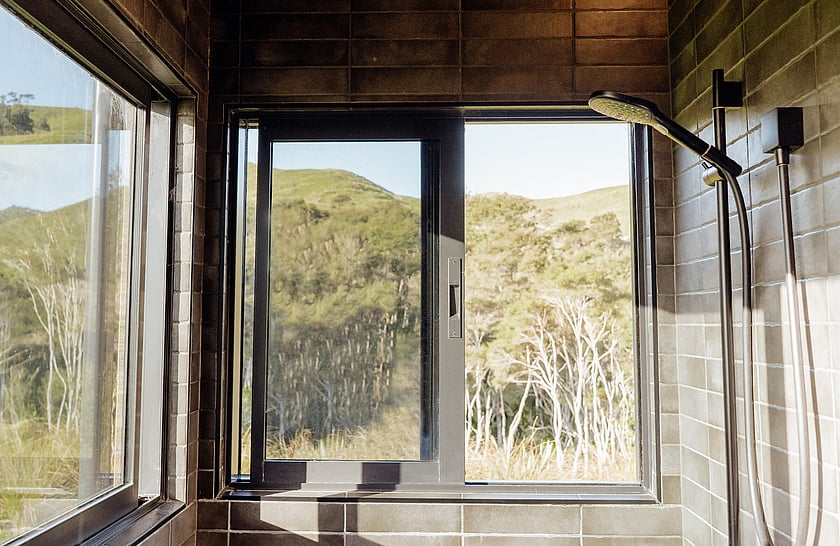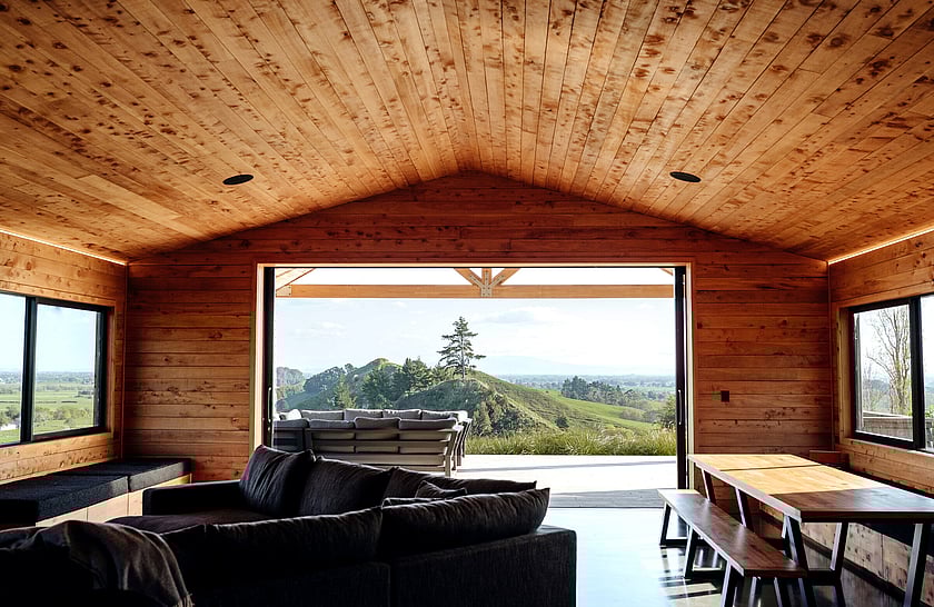 The house has been clad in horizontal bevel-backed Marcocrpa, and recycled galvanised corrugate iron sourced from many old woolsheds and barns. Designed to settle in with existing farm buildings in a prominent position on the knoll overlooking their farm and greater Waikato basin. Spectacular views are enjoyed from every nook, with the best from the portico and believe it or not the walk-in shower!