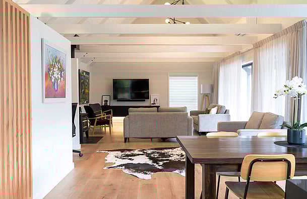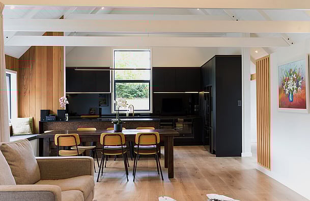 The project commenced in July 2020, with a complete re-roof in Corrugate Colorsteel. The interior was gutted and reconfigured to allow for a better flow. A small extension made way for the new open plan Kitchen, flowing through to the Dining and Living area's.