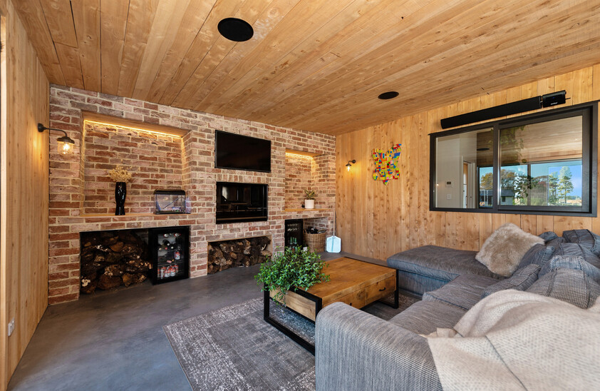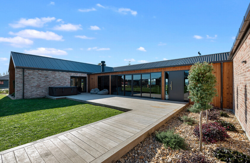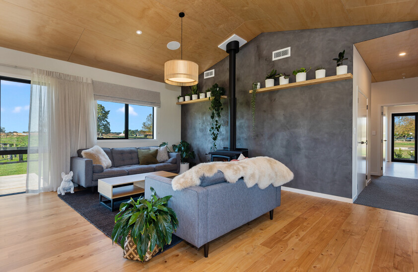 The home is being clad in brick, with feature area's of vertical Macrocarpa. Roof is long run Colorsteel, together providing a low maintenance exterior finish.
