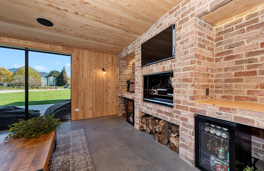 Our clients brief includes a covered entertaining patio area within the central courtyard, for year round use. The louvre roof will open up for ventilation and star gazing, while being able to close in inclement weather. The space also features an outdoor cooking fire.